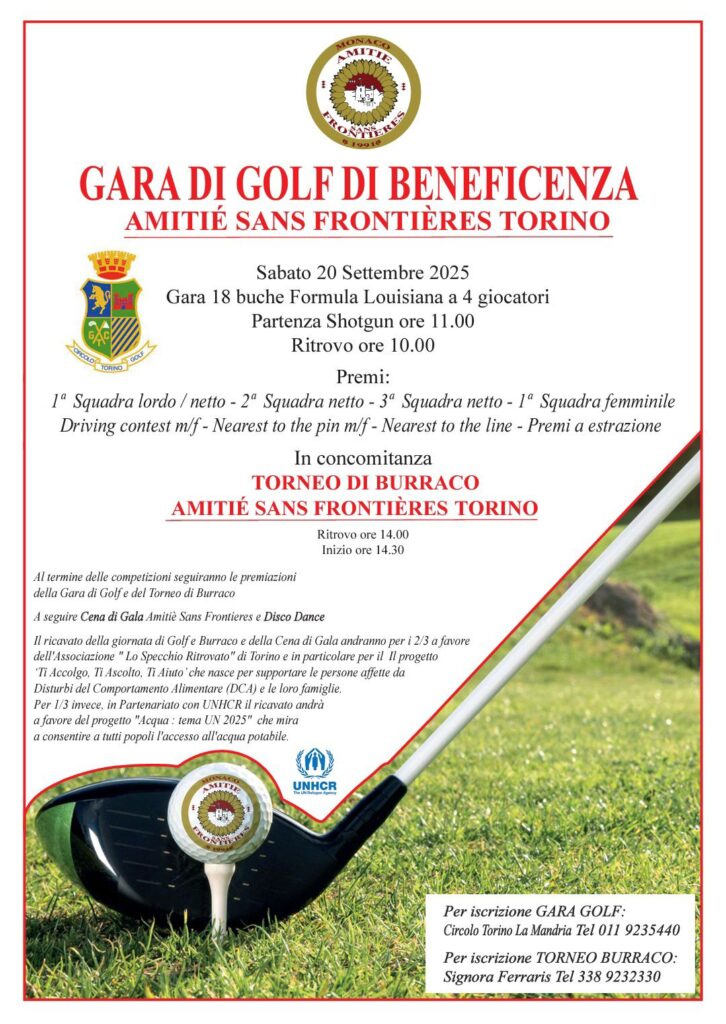 Per iscrizione GARA GOLF:Circolo Torino La Mandria Tel 011 9235440